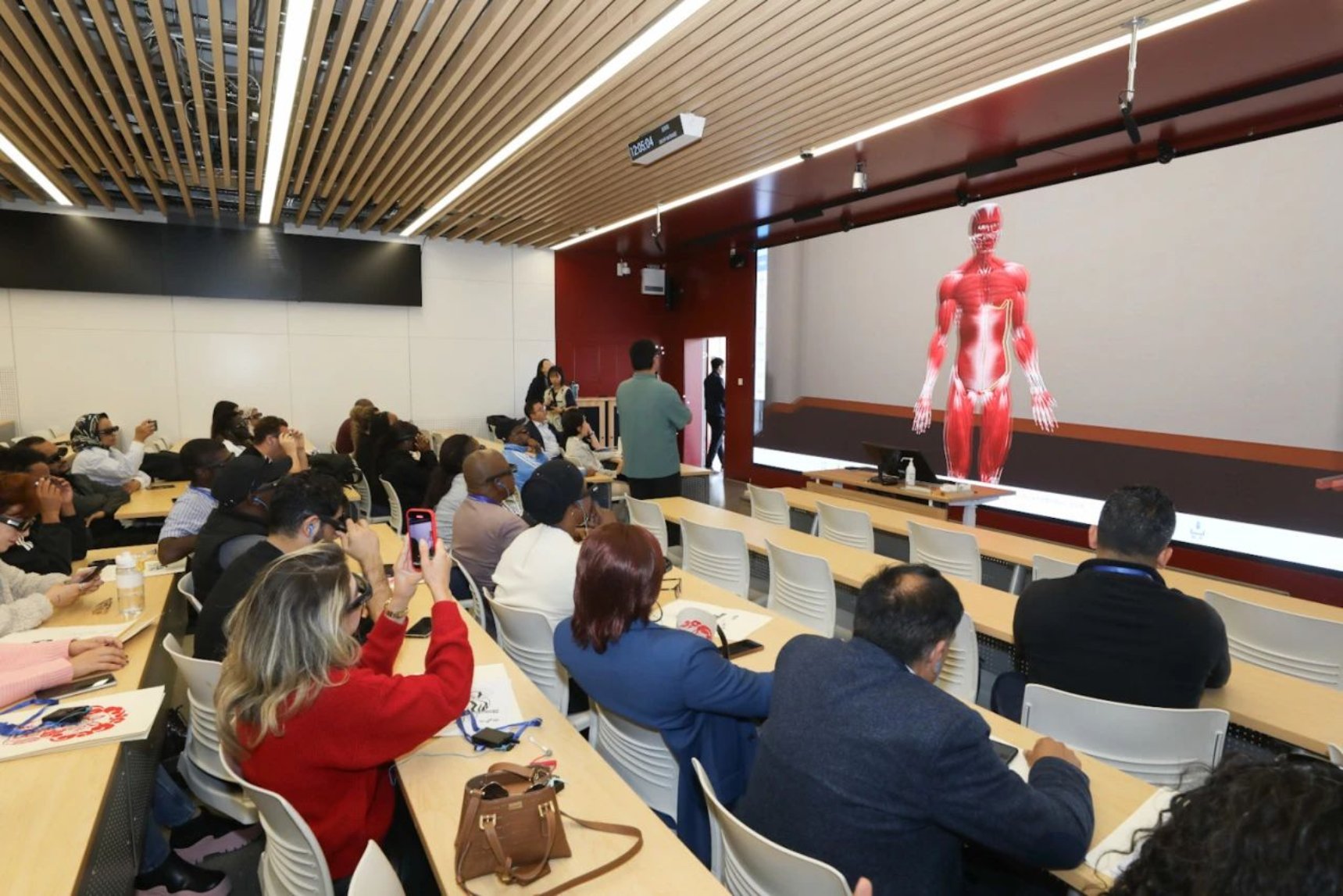 记者们参观了学校智慧教室,深入了解了学校智慧教室智能又实用、全面又精细、便捷又舒适、人文又个性、高颜又暖心的设计理念,身临其境感受了学校“直录直播、互联互通、资源共享”的智能育人环境。