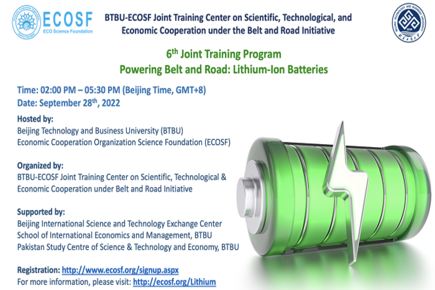 9月28日,我校与经济合作组织科学基金会(ECO Science Foundation)联合主办第六期国际培训,培训主题为“‘一带一路’锂电池发展与应用”。学校党委常委、副校长刘敏华出席会议并致开幕辞。来自“一带一路”国家的研究机构、企业、科技组织、政府部门代表等100余人通过线上平台参与培训。培训由联合培训中心主任邸玉娜、国际经管学院韩璐博士共同主持。