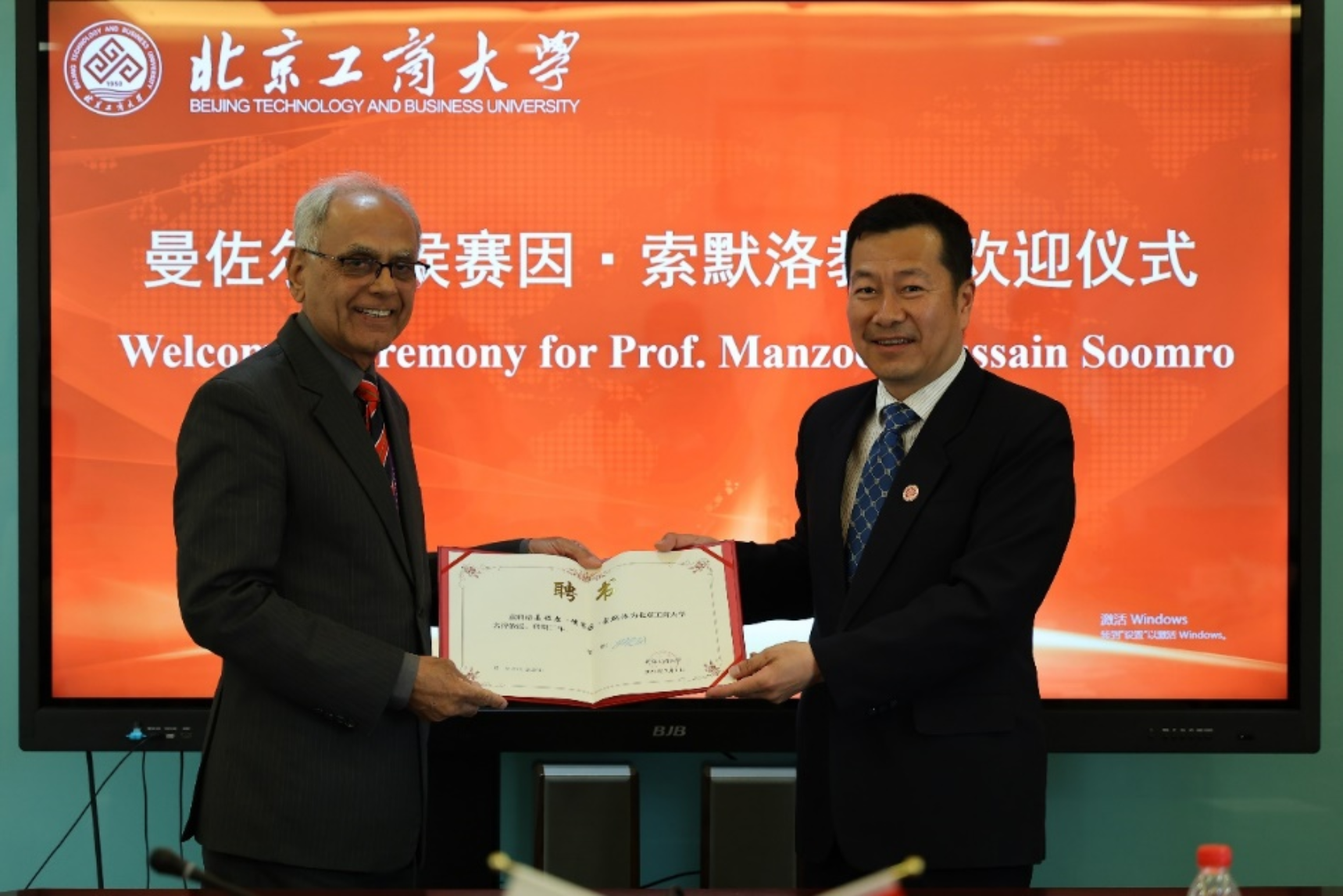 5月10日,学校名誉教授曼佐尔·侯赛因·索默洛教授(Manzoor Hussain Soomro)欢迎仪式在阜成路校区举行。党委常委、副校长刘敏华出席会议。国际经管学院院长詹新宇,人事处副处长录驰冲,国际交流与合作处副处长马雪娇,“一带一路”联合培训中心主任邸玉娜,国际经管学院数字经济系副主任韩璐参加座谈会。会议由马雪娇主持。