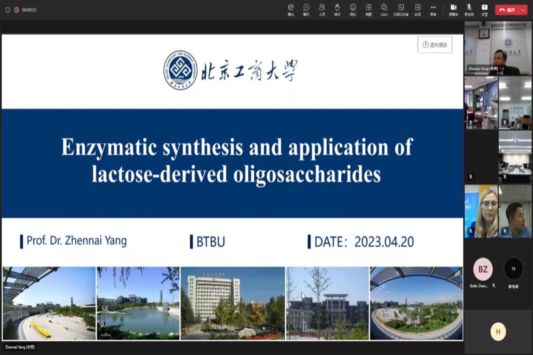 项目参与单位现场汇报环节中,杨贞耐教授做了题为“乳糖衍生低聚糖的酶法合成及应用”的报告,报告介绍了团队在酶法合成乳糖衍生低聚糖中的最新研究进展,并探讨了其研究意义和前景。项目参与单位中国农科院加工所、天津科技大学和君乐宝乳业集团,以及波方合作单位瓦尔米亚-马祖里大学代表对各自负责的研究课题做了总结汇报。