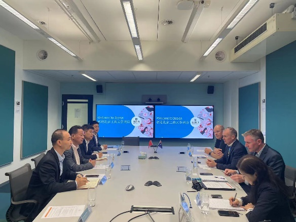 11月16日,郑文红一行访问了澳大利亚迪肯大学,与迪肯大学副校长约翰·莫罗尼(John Molony)进行会谈。莫罗尼欢迎郑文红一行访问迪肯,他表示迪肯大学秉承开放、多元的办学理念,自两校建立合作关系以来,双方一直保持着深度密切的合作,在学生学分互换、本硕学位项目、师资交流等方面取得了很多合作成果。郑文红回顾了双方的合作历史,并向莫罗尼介绍了我校近年来在学科建设和科学研究方面取得的成果,希望两校能够在原有合作的基础上进一步丰富合作项目的种类,拓宽合作的学科专业,使双方合作进一步惠及双方的师生。
