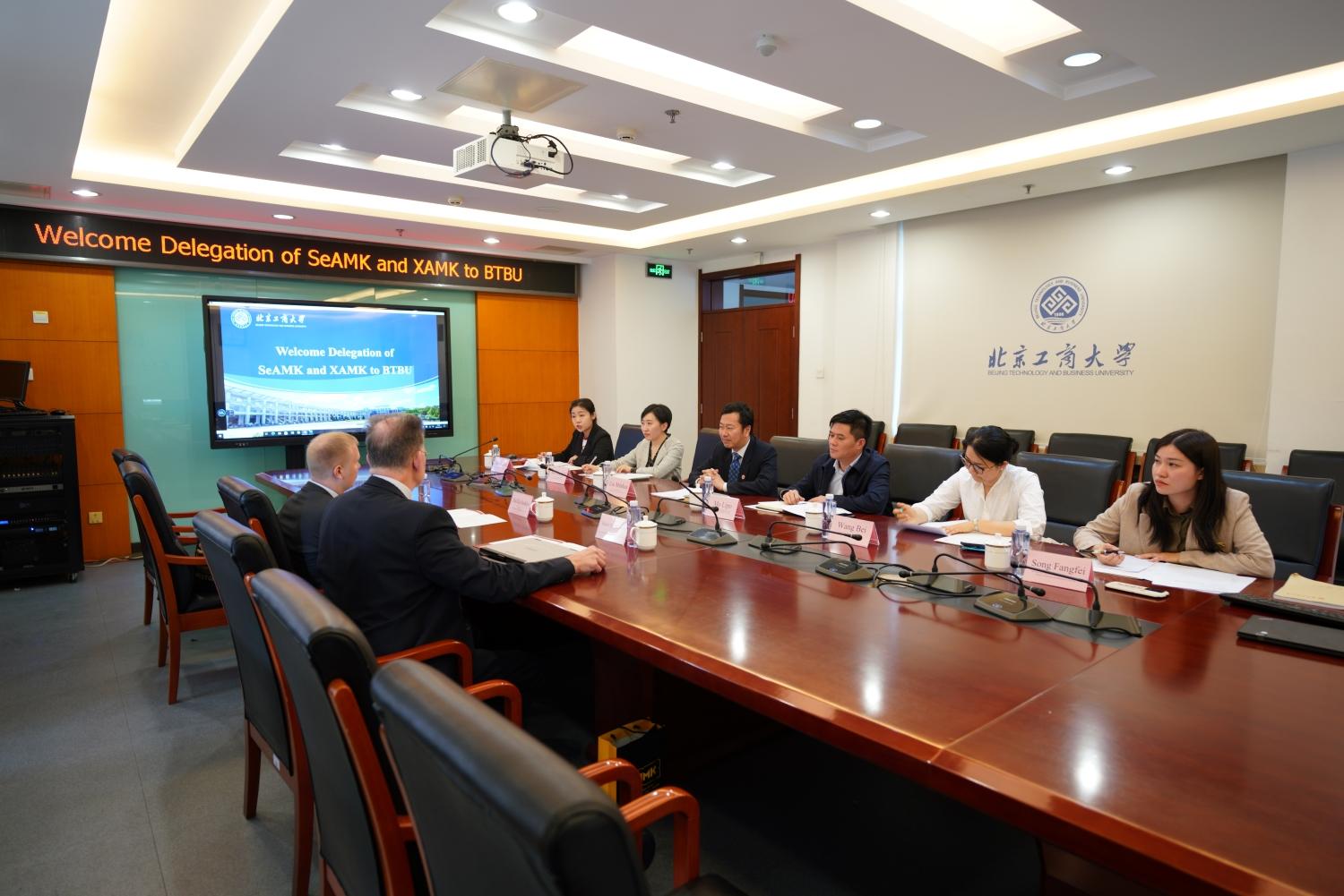 刘敏华对两位校长来访表示热烈欢迎。他简要介绍了学校的发展历程,以及近年来在人才培养、学科建设、师资队伍、国际化发展等方面的情况,强调学校正在围绕商科、轻工和食品优势方向,推进建设特色鲜明的高水平研究型大学。同时,他对芬兰人民坚忍不拔的“西苏”精神给予高度赞扬,表示芬兰高校在研究与创新领域的积极探索值得学习。他指出,学校非常重视国际交流与合作,将开放作为学校建设的重要方针,希望通过此次访问,可以增进彼此了解,与芬兰高校搭建起交流与合作的平台,未来在人才培养、教师交流等方面开展项目,取得实质性的合作成果。