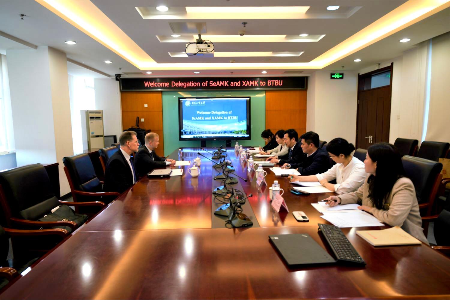4月18日下午,芬兰塞伊奈约基应用科学大学校长哈利拉·亚考(Hallila Jaakko),芬兰东南应用科学大学校长赫依珂·萨斯塔莫依恩(Heikki Saastamoinen)一行两人访问我校。学校党委常委、副校长刘敏华在阜成路校区会见了两位校长。