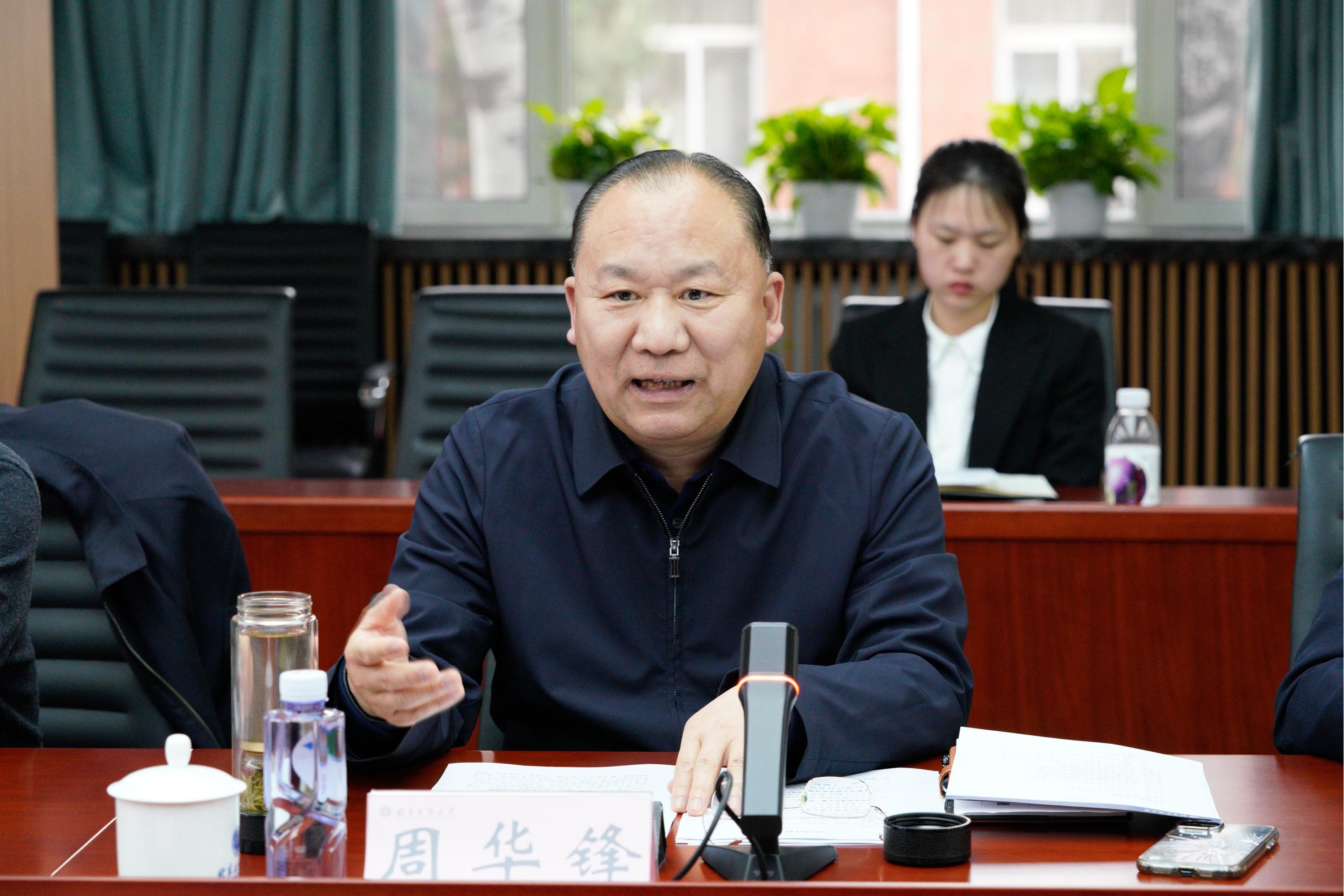 3月14日,河南省南阳市副市长周华锋一行到我校阜成路校区调研交流。党委副书记、校长郭建华,党委常委、副校长寇红江出席调研座谈会。会议由寇红江主持。