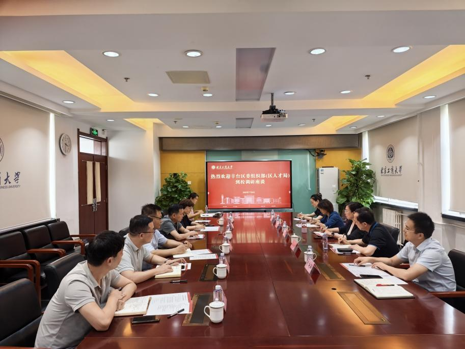丰台区政府特聘专家、首席科学家、中关村丰台园专家主任、医药大健康专班执行召集人毛山宏,丰台区委组织部副部长(兼)、区人才工作局局长卢颖,区委组织部办公室主任臧留芳,和义街道党工委书记刘博涵;学校党委常委、党委组织部长、党委统战部长武晶晶,科学研究院自然科学处处长兼技术转移中心主任钱立军,商学院党委书记樊江涛,国内交流与合作处副处长刘鸿,食品与健康学院副院长孙啸涛,食品与健康学院院长助理谭晨参加调研座谈。