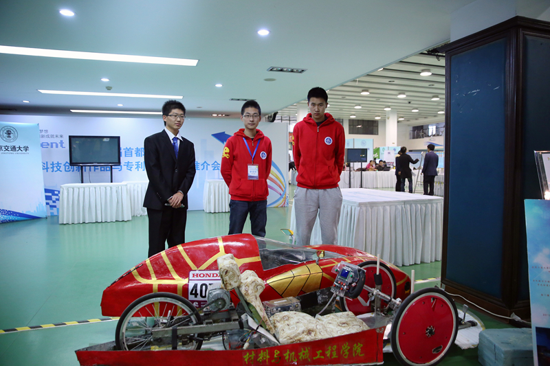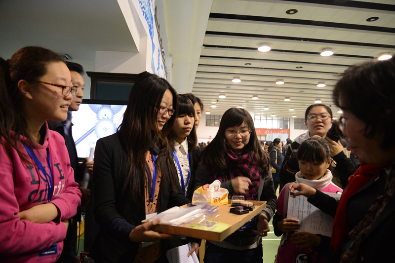 材料与机械工程学院的“抠门狼”团队凭借大胆创意、精确的结构设计及以人为本的设计理念,制作出的节能电动车凭借其安全、舒适、方便、节能的特性备受关注。食品学院的百合紫薯山药糕从营养口味上进行创新,满足消费者日益丰富的需求,突出了学校食品学科特色。艺术与传媒学院学生团队通过展板展示的创意作品设计模型图,向大家宣传了废物利用的环保理念:创意设计“saving”是一个回型衣架,它不仅可以节省挂衣服的空间,还可以快速将衣服放进衣橱,节省时间;“finding”则是一个在夜间可以迅速找到拖鞋的设计,为人们提供了便利;《复活》是同学们将废旧的啤酒瓶盖与软磁铁相结合而成的冰箱贴。