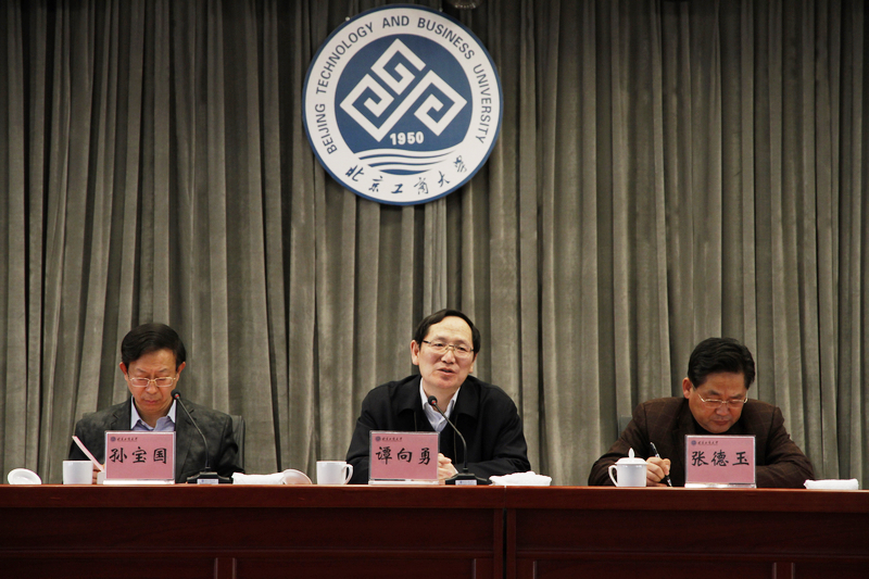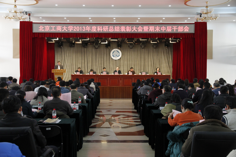 1月10日,学校2013年度科研总结表彰大会暨期末中层干部会在阜成路校区召开。校领导谭向勇、张德玉、孙宝国、谢志华、李朝鲜、张耘、方德英出席大会。学校中层干部、各院系主任、受表彰教师及科研秘书参加了会议。会议由副校长孙宝国主持。