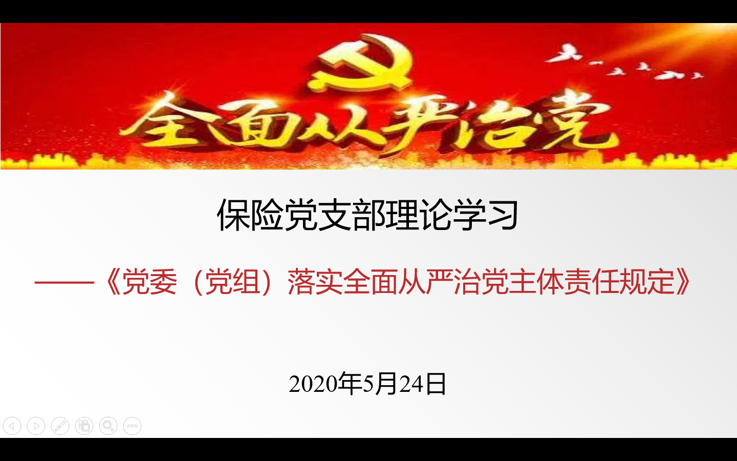 2020年5月24日晚7点,保险系党支部的教师党员召开2020年第三次理论学习会议。按照学院党员和教职工理论学习计划的安排部署,本次会议的主题是学习《党委(党组)落实全面从严治党主体责任规定》等党章党规党纪。会议通过腾讯会议的形式开展,由党支部书记吉彩红老师主持。