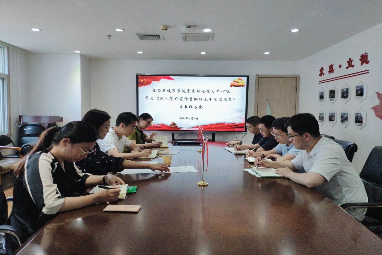 为深入学习贯彻习近平新时代中国特色社会主义思想,6月7日,食品与健康学院党委理论学习中心组学习《深入学习宣传贯彻习近平法治思想》专场报告会,学院理论中心组成员参加。