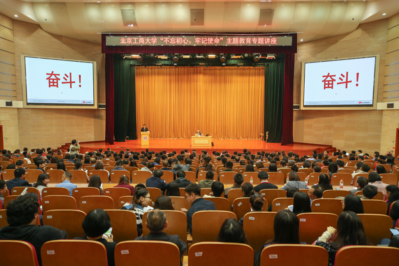 为深入推进“不忘初心、牢记使命”主题教育,10月10日上午,学校在良乡校区举行“不忘初心、牢记使命”主题教育专题讲座、党委理论学习中心组(扩大)学习会暨学习大讲堂首场讲座,邀请华为技术有限公司副总裁苏伟作题为“奋斗——华为文化与企业家精神”的专题报告。学校领导黄先开、孙宝国、张德玉、谢志华、张耘、郑文红、方德英出席活动。中层干部、教工支部书记、学生支部理论学习导师、民主党派人士代表、党务工作者,本科生、研究生代表,以及华为公司代表等800余人参加活动。讲座由党委副书记张德玉主持。
