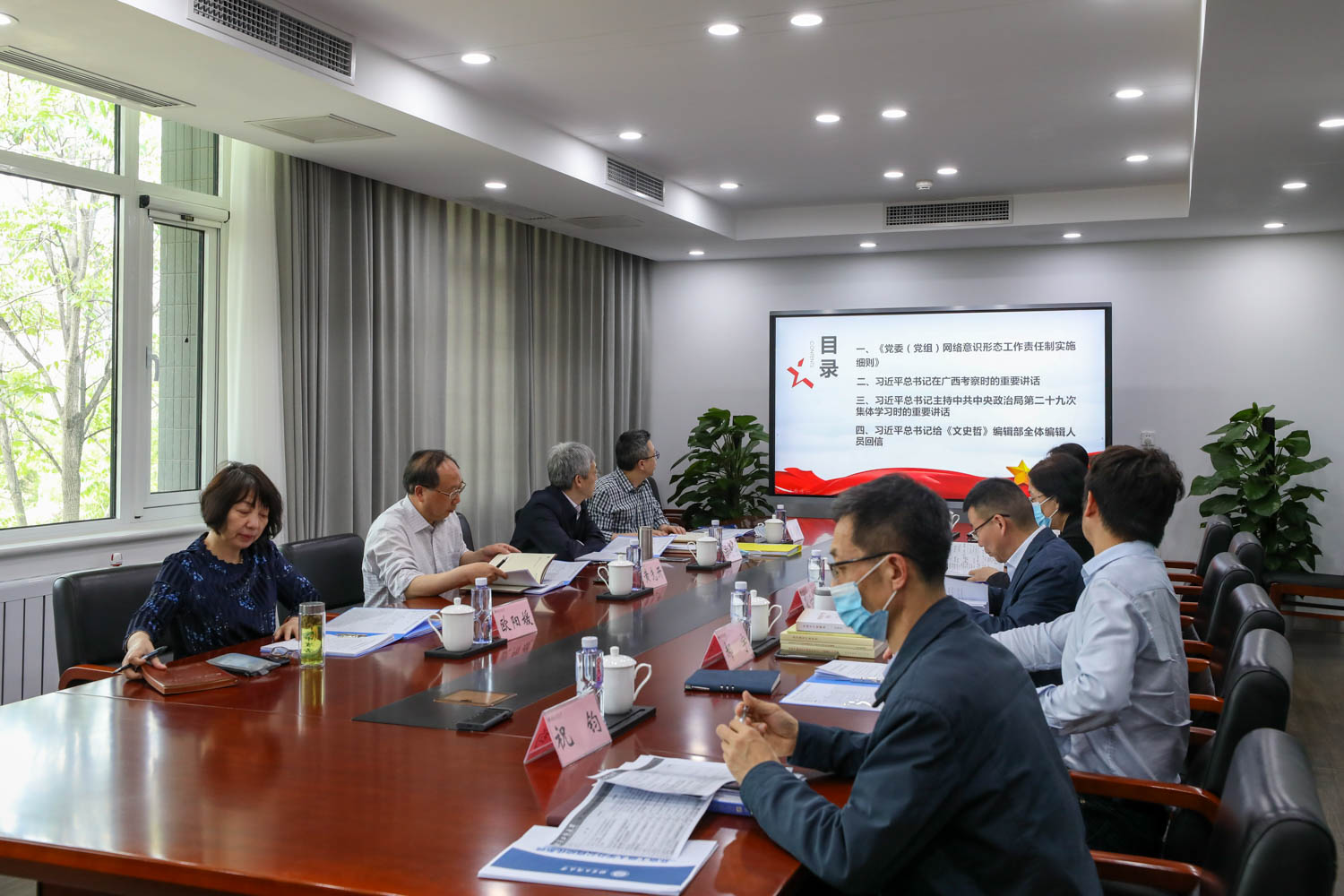 5月11日下午,学校召开党委理论学习中心组专题学习会,集体学习习近平总书记近期在广西考察时重要讲话精神、在中央政治局第二十九次集体学习时的重要讲话精神、给《文史哲》编辑部全体编辑人员回信,以及《党委(党组)网络意识形态工作责任制实施细则》《中国共产党普通高等学校基层组织工作条例》,学校党委理论学习中心组成员参加学习,会议由党委书记黄先开主持。