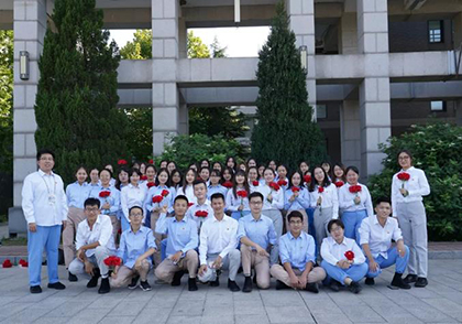 巡东与参加国庆阅兵训练的部分学生合影留念