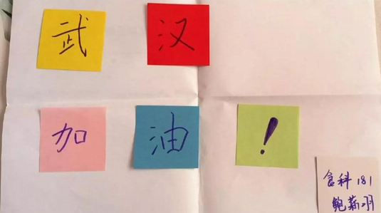 战胜疫情,共克时艰。全体武汉同学们,让我们携手并肩,与全国人民一道,弘扬中国精神,发扬民族文化,凝聚全体力量,汇聚中国之魂,万众一心,众志成城,不畏艰险,不畏顽疾,相信国家,相信政府,共赢防控阻击战,共筑健康中国梦!(电子181 高炜)