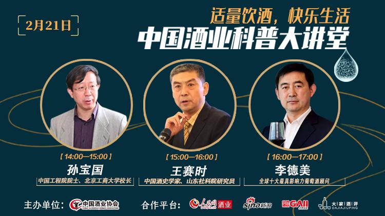 近日,中国酒业协会主办“适量饮酒 快乐生活”《中国酒业科普大讲堂》,宣传和推广中国酒文化,为酒业从业人员与广大酒类爱好者提供线上专业知识。校长孙宝国院士受邀开讲。《人民网》以《孙宝国院士开讲,王赛时、李德美讲好在<中国酒业科普大讲堂>最后一课!》为题进行了报道,现将全文转载如下:
