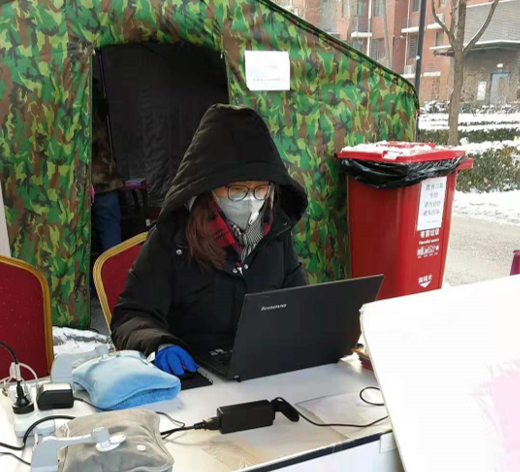 第一天一大早,一位阿姨来登记,我接过她的身份证开始录入信息,戴着一次性手套的我,打字很不自如,因此效率有点低。天气寒冷,阿姨等的时间有点儿长了,她搓了搓手,跺跺脚,看着她的动作,我心里更着急了,想快一点,却总是打错,好不容易全都填写完了,在向她交代居家隔离注意事项时,我却有点记不清楚……心里越着急,越是有些“笨嘴拙舌”了,最后终于在工作人员的帮助下,一切都交代妥当,这我才长舒了一口气。