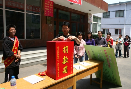 据悉学校稍后会将这笔款项定点支援灾区某学校,用于那里的灾后重建.