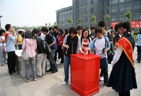 在捐款现场,我们看到有很多是以班级或集体为单位进行捐款的,其中有机械054班、艺设062班、营销051和052、法学071班等,它们都是利用课间时间,组织大家捐钱的,其中营销班的同学们还将卖杂志,拉赞助的钱也捐了出来。奥运会志愿者骨干班也将芙蓉学子奖学金5000元全部捐给了灾区人民,志愿者骨干班代表李俊向记者介绍道:“作为一名志愿者,我们有义务向灾区人民奉献我们的爱心,我们希望大家能够众志成城,抗击震灾,钱虽然不多,但是尽了我校奥运志愿者的微薄之力。”信息学院的学生会、青志协、团总支干部,也自发集体捐款,信息学院还在得知地震发生后,以最快的时间出了一期海报,鼓励灾区人民挺住,希望他们能够平安。经济学院和会计学院团总支前期也分别在院系组织了捐款活动,捐款金额分别为37000余元和29000余元.