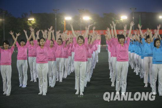 色情片近千名教职工在校运会开幕式上认真做好广播操的每一个动作
