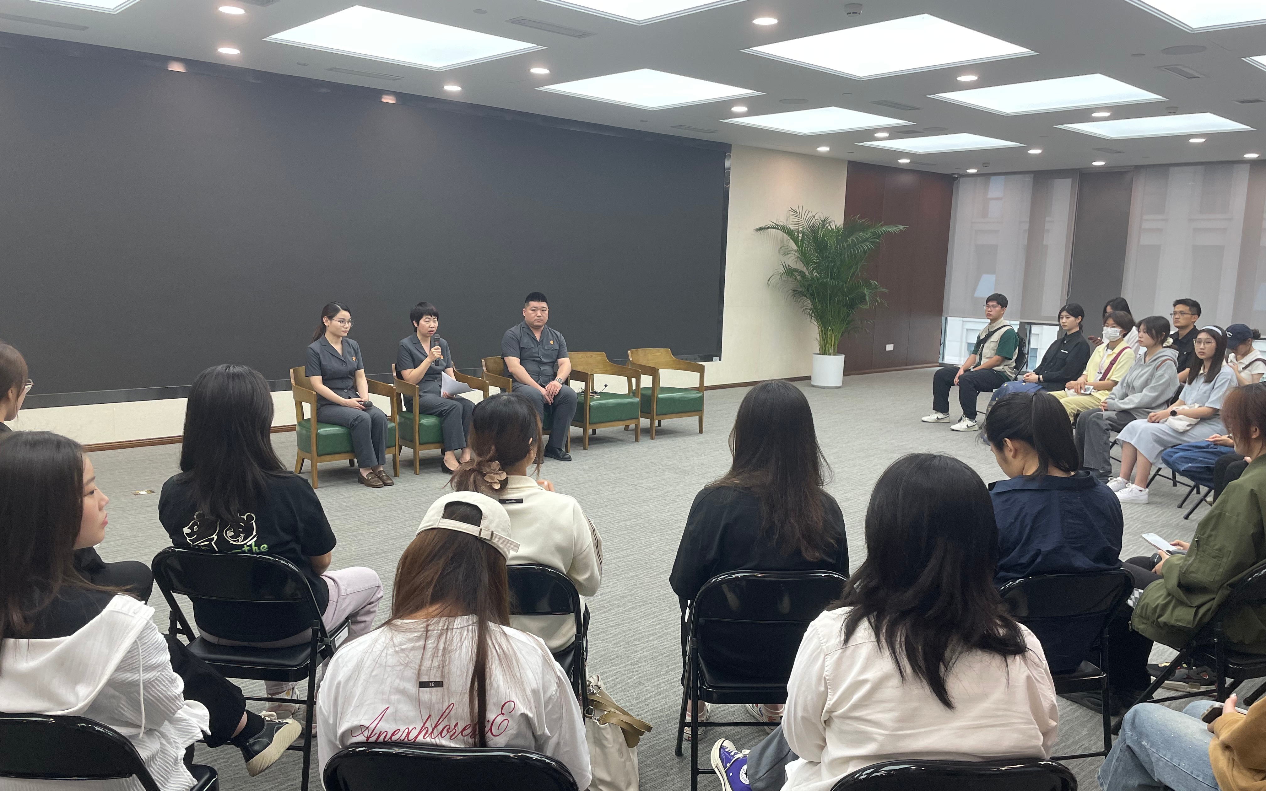 参观后,法官们还和同学们进行了座谈交流。“互联网法院的办案模式是否可以在全国进行推广?”“互联网法院审判案例的执行和一般法院有什么区别?”法律专业的同学们抓住这个机会,向法官提出了许多专业问题。法官们一一解答。“依赖于科技水平的不断进步,互联网法庭才能完成这些工作。期待同学们以后可以为此贡献自己的力量。”互联网法院的法官说道。