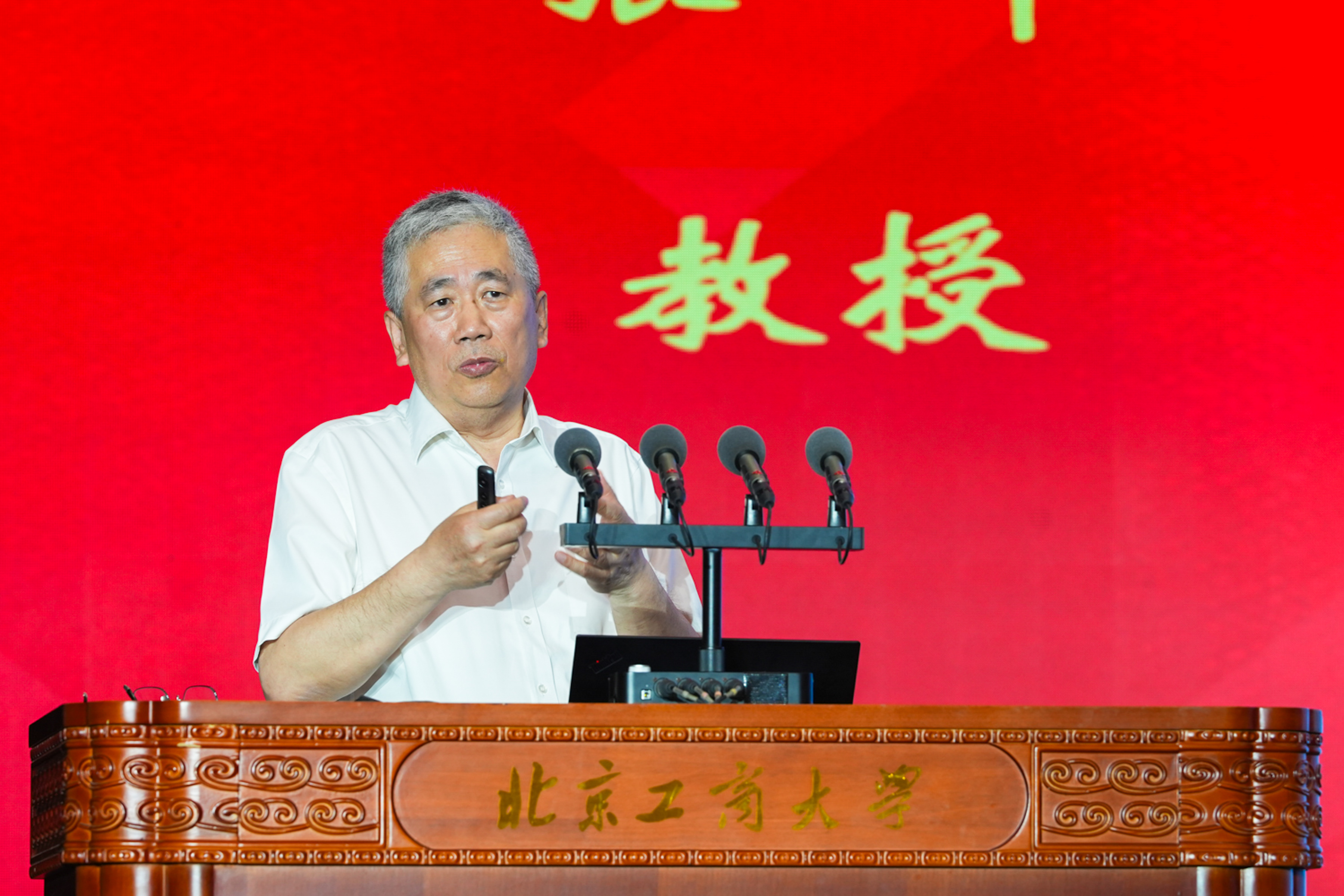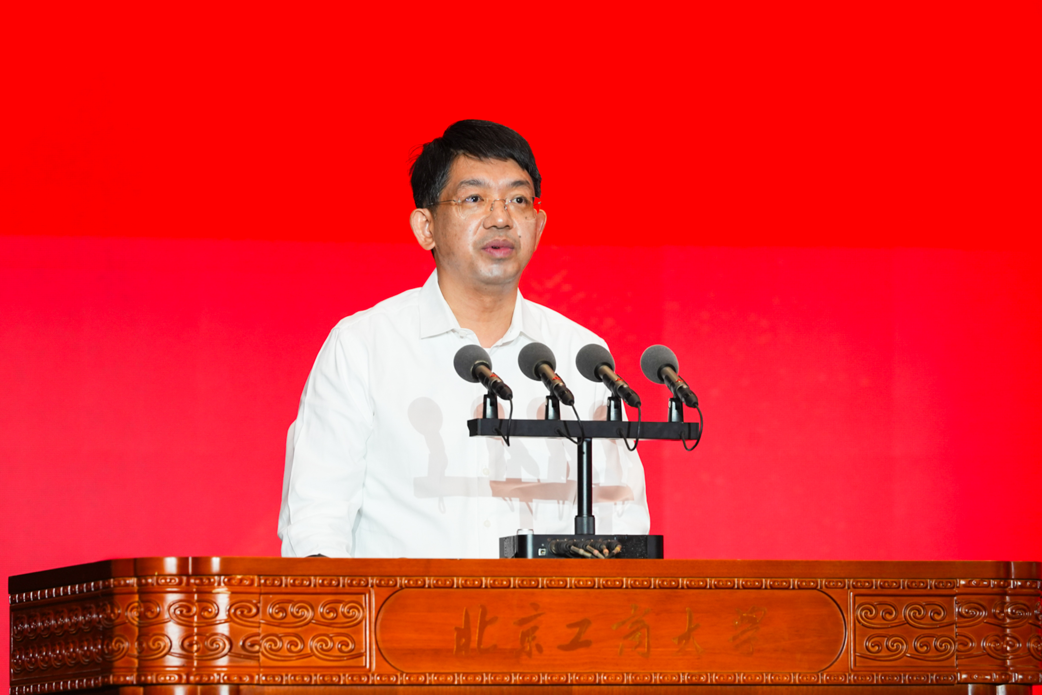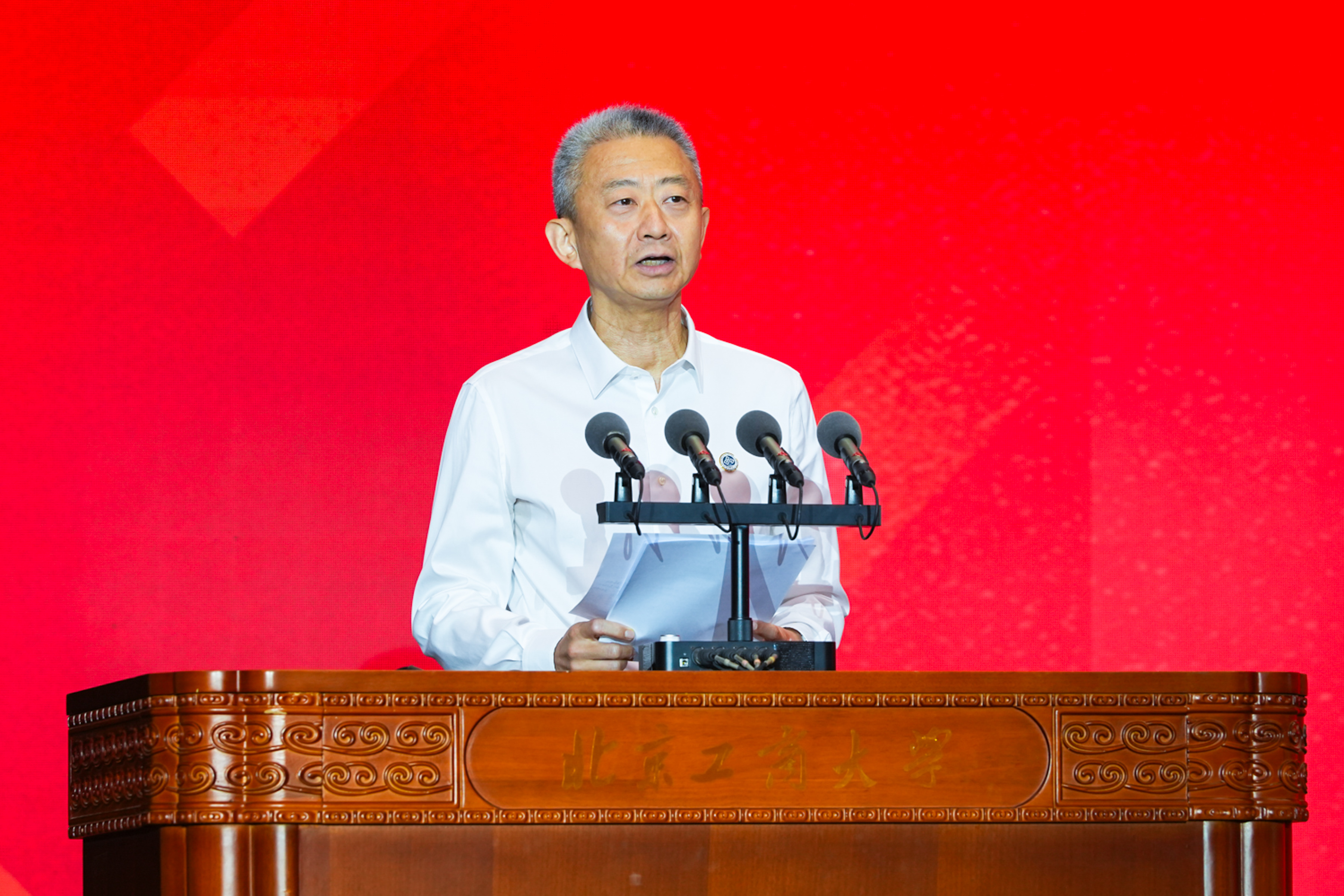 校党委副书记、校长郭建华作学校创新发展成果及创建“双一流”情况报告。他代表学校全体师生员工,向关心支持学校发展的各级领导、各界朋友、广大校友,致以热烈欢迎和衷心感谢。他回顾了学校从建校到三校合一、再到 “工商一体” 新征程的发展历程,汇报了学校在学科建设、人才培养、科学研究、师资队伍建设等方面取得的丰硕成果。他强调,建设世界一流大学和一流学科既是国家教育强国战略的迫切要求,更是学校自身发展的内在需要。他号召全校师生以此次大会为新起点:以“工商一体”之智,争当教育强国建设的先锋队;以“奋进一流”之志,争当科技自立自强的突击队;以“经世济民”之责,争当区域协调发展的主力军,在中国式现代化和新时代首都发展的壮阔征程上展现北工商担当。