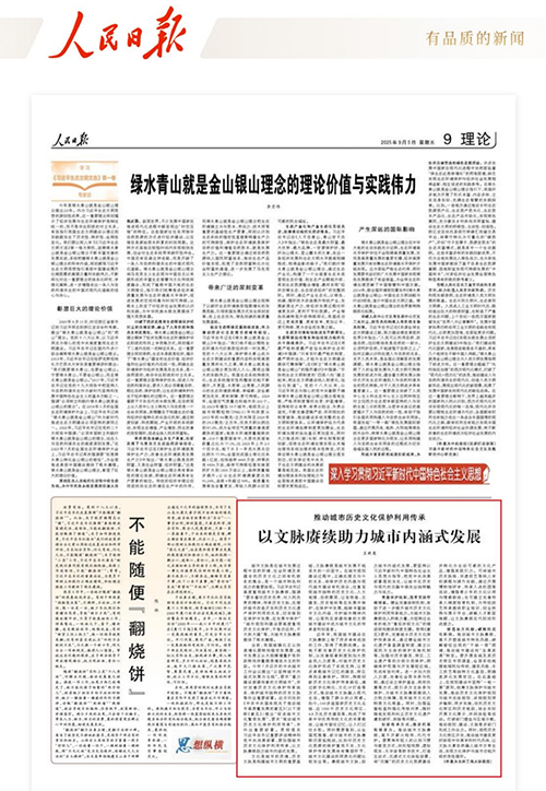 2025年9月5日,《人民日报》理论版刊发了我校语言与传播学院王新惠教授发表的署名文章《以文脉赓续助力城市内涵式发展——推动城市历史文化保护利用传承》。文章立足我国城镇化发展新阶段,紧扣党中央关于城市高质量发展的决策部署,深刻阐释城市文脉赓续的重要意义与实践路径,为新时代城市历史文化保护利用传承提供了有力的理论支撑与行动指引。这是我校新闻传播学科发表高水平论文的又一重要突破。