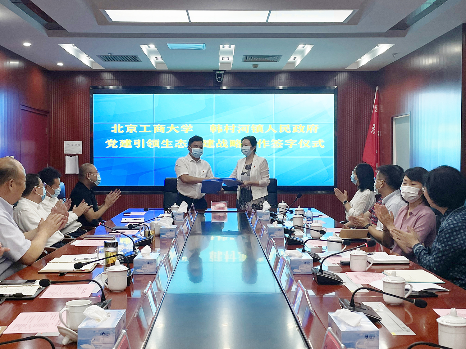 9月3日,生态环境学院与房山区韩村河镇人民政府在韩村河镇政府举行“党建引领生态共建战略合作”签字仪式。副校长张耘出席签约仪式。会议由韩村河镇党委书记高运华主持。