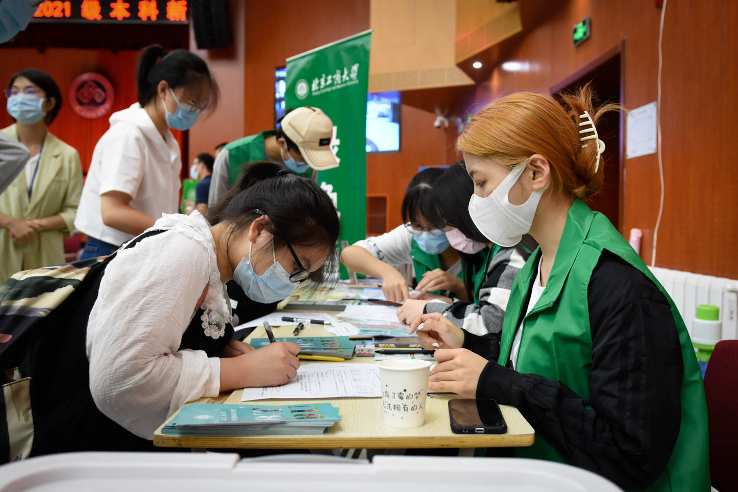 各学院迎新工作现场也各具特色。数学与统计学院提前查看天气情况作出相应的应急方案并预备多个迎新地点,同时邀请家长线上参加报到当天召开的学院师生见面会和专业介绍会,共同融入大学生活。食品与健康学院在迎新前通过线上直播的方式带领新生们熟悉报到路线和校园环境,报到当天,特为新生设立“‘食’光邮局”,新生在信封中写下大学四年的规划与目标,期待大学四年后重新开启,引导新生转换角色、明确目标,激励他们成长为更好的自己。轻工科学技术学院将专业教育前置,香料香精技术与工程专业今年第一次招生,系里选用研发的香精调配香水紧随录取通知书寄送每一位同学,让新生直观感受香料香精的魅力。学院组织80多名志愿者,提前与新生一对一精准对接,掌握新生到校时间和行李数量,全程陪伴新生报到。化学与材料工程学院在报到当天,号召已报到的2021级新生积极加入到迎新生志愿者队伍中。学院领导、班主任和辅导员一同走访了新生宿舍,叮嘱新生要谨防电信诈骗,要做好宿舍建设,按照学校和学院要求认真完成新生教育。生态环境学院结合专业特色,用学生“六五环境日”环保书签设计比赛的获奖作品制作了明信片,新生在明信片上写下对未来的寄语,引导新生从入学伊始热爱环境专业,树立为国家生态文明建设和生态环境保护奉献的理想信念。人工智能学院特设科技展台和展示板,向新生们展示今年来部分学科竞赛获奖作品和各专业前景等,为新生了解本专业做了详细的准备。计算机学院设立了“挥洒青春,展望未来”主题的展板,为21级新生提供了记录对大学新生活的愿景与自我寄语的平台,让同学们留下大学第一次落笔,记录自己的成长。经济学院特意为新生们架设了照相留念框、留言板,供新生们签字留念,记录下自己在北工商的“第一笔”。商学院特色吉祥物“商院虎”在门口欢迎新同学,老生志愿者穿着鲜黄色的老虎布偶服与新生们亲切互动、合影留念;同时,学院将新生融入教育前置,提前征集了新生志愿者到校,与辅导员、老生志愿者一起做好迎新工作。国际经管学院暑期在公众号推出“迎新特辑”9篇,“你好萌新”11篇,使新生提前了解校园环境、学院办学特色,全力为新生保驾护航;安排新生们在假期之中给4年后的自己写一封跨越时光的信笺,并在迎新现场设置了“时光邮局”信箱,让小萌新亲手将它投寄给4年后的自己。电商与物流学院通过“云班会”、学院公众号、新生群等将迎新流程等事项通知到每位学生,并通过做好应急方案,迎新现场根据天气变化,将报到地点转移至室内,有条不紊开展迎新工作,学院还特别安排志愿者为新生拍摄照片,为新生报到留下美好回忆。法学院为新生划分了报到时间段,确保报到不扎堆,服务更及时;学院吉祥物平平坐在桌子上欢迎新同学,学院还精心为每名同学制作了专属登机牌,搭乘BTBULAWSCHOOL航班,开启新征程!外国语学院设置了特殊的“朋友圈鼓励板”,送上精心设计的学院LOGO口罩,以独具匠心的方式欢迎新生。传媒与设计学院作为北工商唯一招收艺考专业的学院,发挥专业优势设计了5块特色展板,以21级全体新生的名字组成了学院名称,同时紧跟时事,把“铭记烈士、歌颂英雄”作为迎新宣传主题,在欢迎新生的过程中贯穿爱国主义教育,传承北工商爱国传统,铭记历史、保持初心。