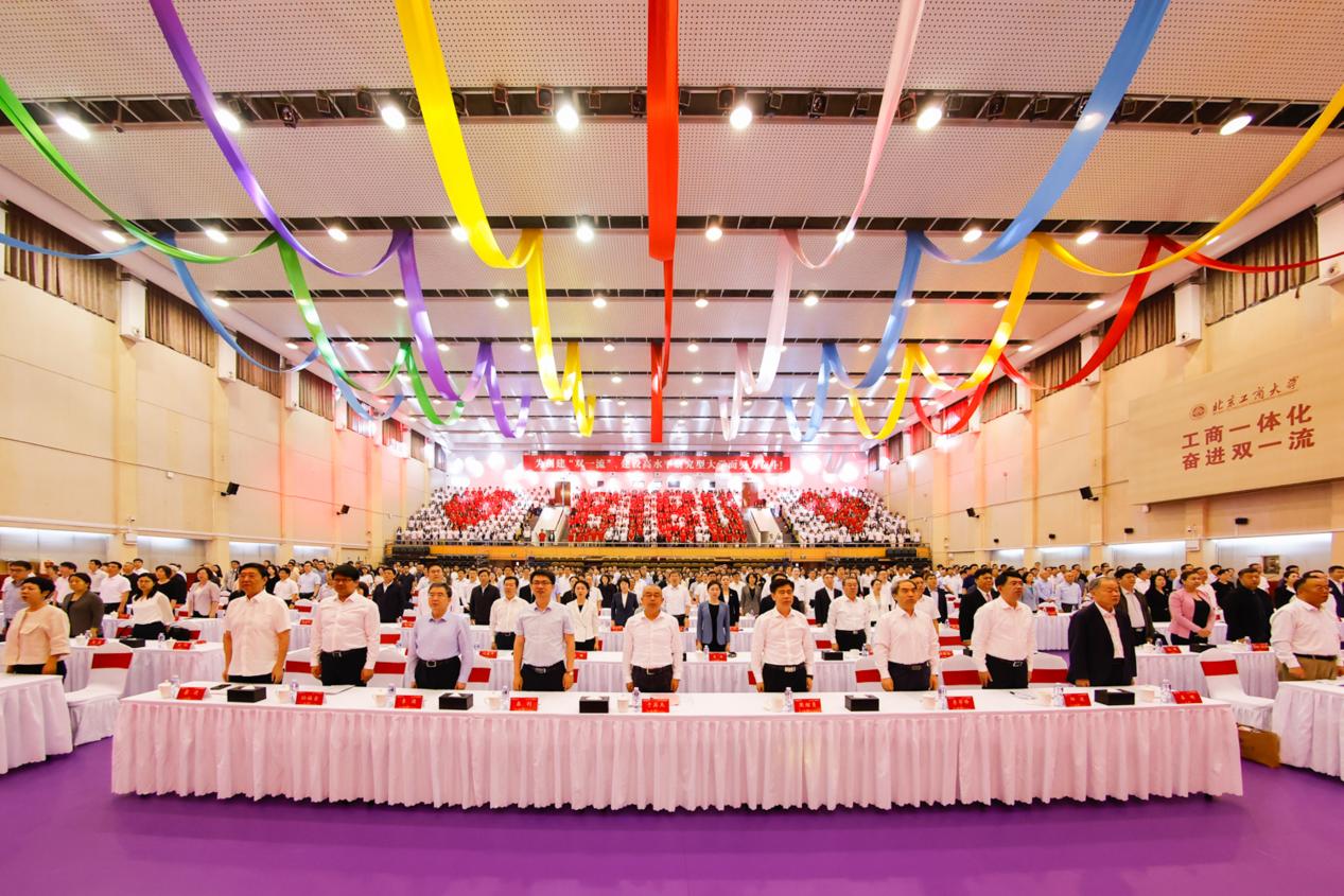 校党委副书记、校长郭建华作学校创新发展成果及创建“双一流”情况报告。他代表学校全体师生员工,向关心支持学校发展的各级领导、各界朋友、广大校友,致以热烈欢迎和衷心感谢。他回顾了学校从建校到三校合一、再到 “工商一体” 新征程的发展历程,汇报了学校在学科建设、人才培养、科学研究、师资队伍建设等方面取得的丰硕成果。他强调,建设世界一流大学和一流学科既是国家教育强国战略的迫切要求,更是学校自身发展的内在需要。他号召全校师生以此次大会为新起点:以“工商一体”之智,争当教育强国建设的先锋队;以“奋进一流”之志,争当科技自立自强的突击队;以“经世济民”之责,争当区域协调发展的主力军,在中国式现代化和新时代首都发展的壮阔征程上展现北工商担当。