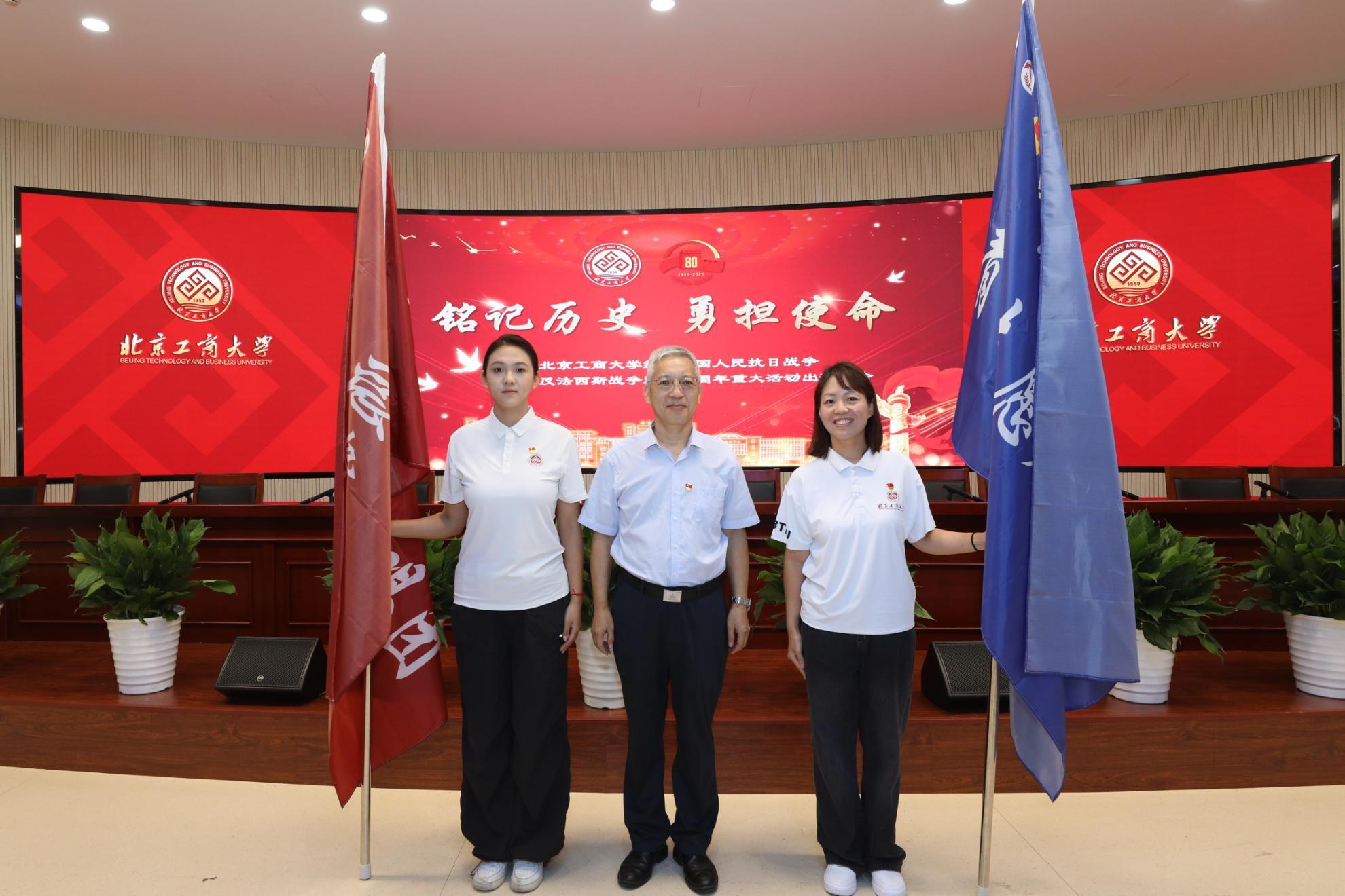 出征大会上,沈千帆号召参与活动的全体师生以工商人之责任、担当、激情投身工作,以工商人之品质、品味、品行发扬作风,以“精精益求精、万万无一失”标准,向党和人民交出一份满分的北工商答卷!校领导为参与活动的师生赠送慰问品。李中奇为合唱团与志愿服务团授旗。