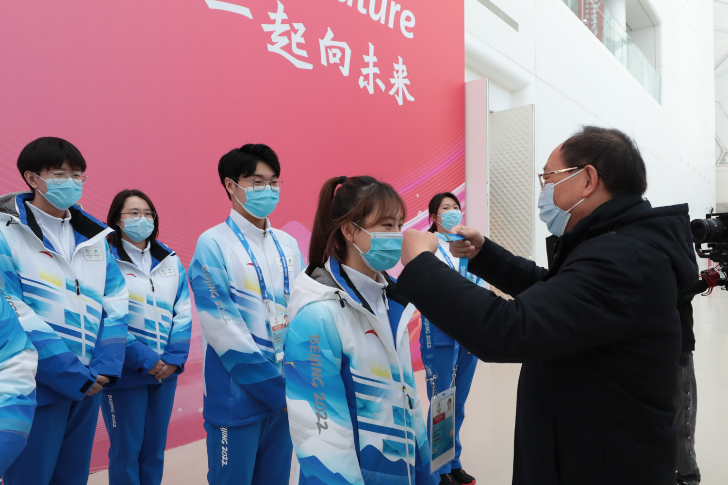 我校冬奥会志愿者代表向学校领导赠送了志愿者们精心准备的纪念品,表达对学校精心保障的感谢。领导们的慰问、关怀和鼓励让志愿者们备受鼓舞,志愿者们纷纷表示将继续坚定信心,全力以赴,以专业的服务和饱满的热情参与冬奥会志愿服务,在冰立方这座“奥运遗产”中接续传递奥运薪火,用实际行动擦亮色情片志愿者这张金名片,用奉献书写志愿服务的新篇章,向世界展现工商青年奋发有为青春风采。