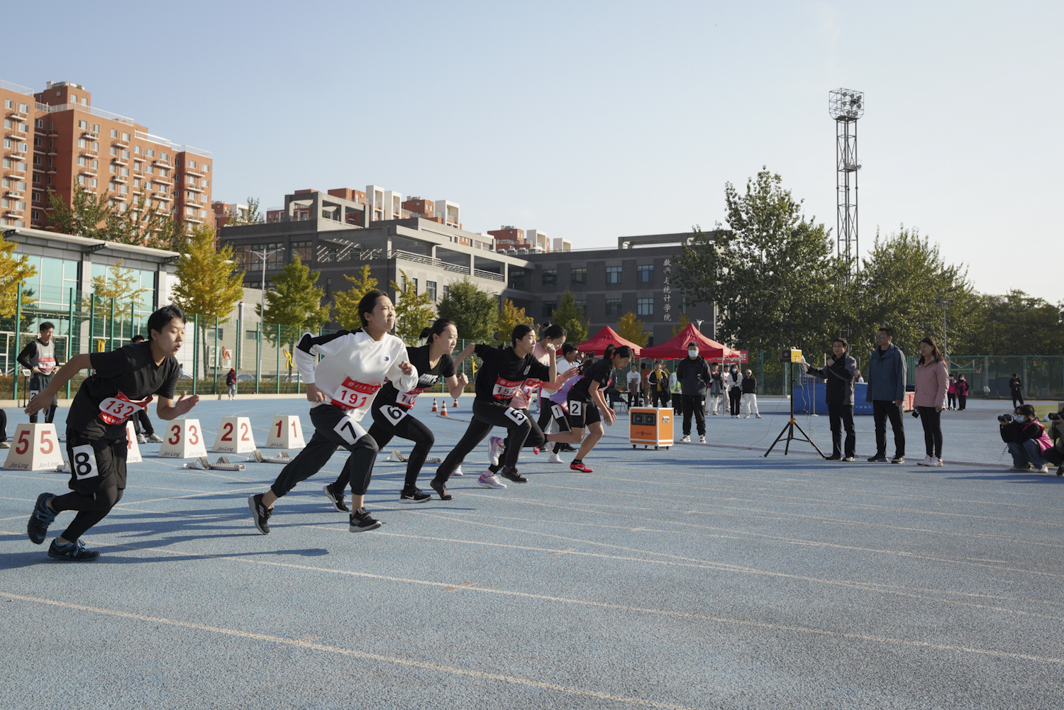 据统计,今年共有1490人次参加了本次运动会田径项目的激烈角逐,658名学生在趣味项目中比拼;裁判员、志愿者、学生记者等285人,安保、后勤保障人员80人,他们在各自的岗位上默默奉献、积极投入,为运动会的顺利进行保驾护航,成为了赛场上一道靓丽的风景线;1700余名师生到场为参赛选手们呐喊助威,与选手们一同感受运动的激情、青春的力量。