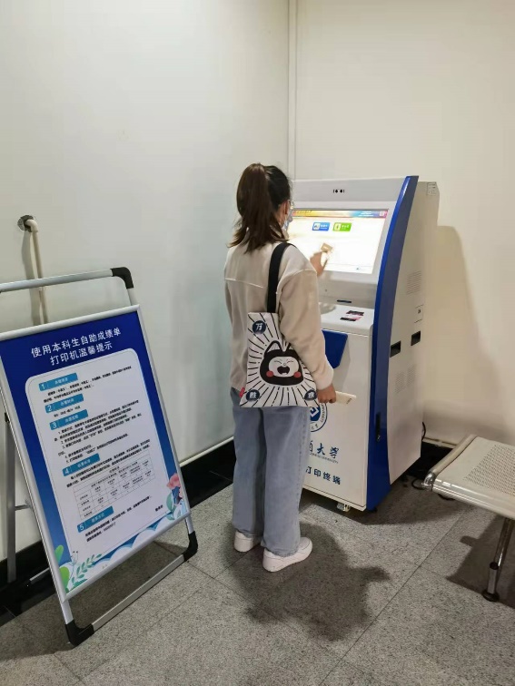 学生还可利用线下自助绩单打印机,打印成绩单、在读证明等材料。目前两个校区安装配置了四台打印机,可打印成绩单(中英文)、在读证明(中英文)、毕业翻译、学位翻译、国家外语四六级考试成绩证明、平均学分绩点及平均分证明(中英文)、休学证明、退学证明。打印纸张采用高防伪技术,且印有教务处红色印章。该系统从上线至今已打印1103份。