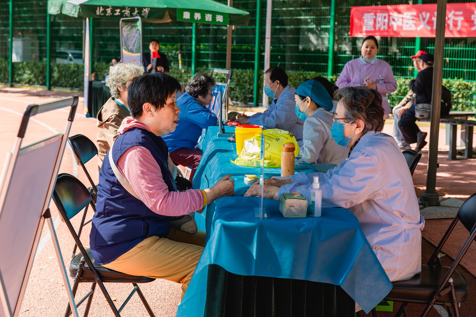学校医院还组织了“重阳中医义诊行,党建关怀暖桑榆” 党支部健康义诊活动,特别邀请中医专家给老同志义诊和测血压等健康服务活动。专家们为老同志们把脉问诊,提供个性化的健康建议;校医们则认真为他们测量血压,讲解如何保持血压稳定的重要性。这些贴心的服务让老同志们充分感受到了学校的关怀和温暖。康养机构也在现场给老同志讲解养老方案和理念,供大家有更多的养老选择。