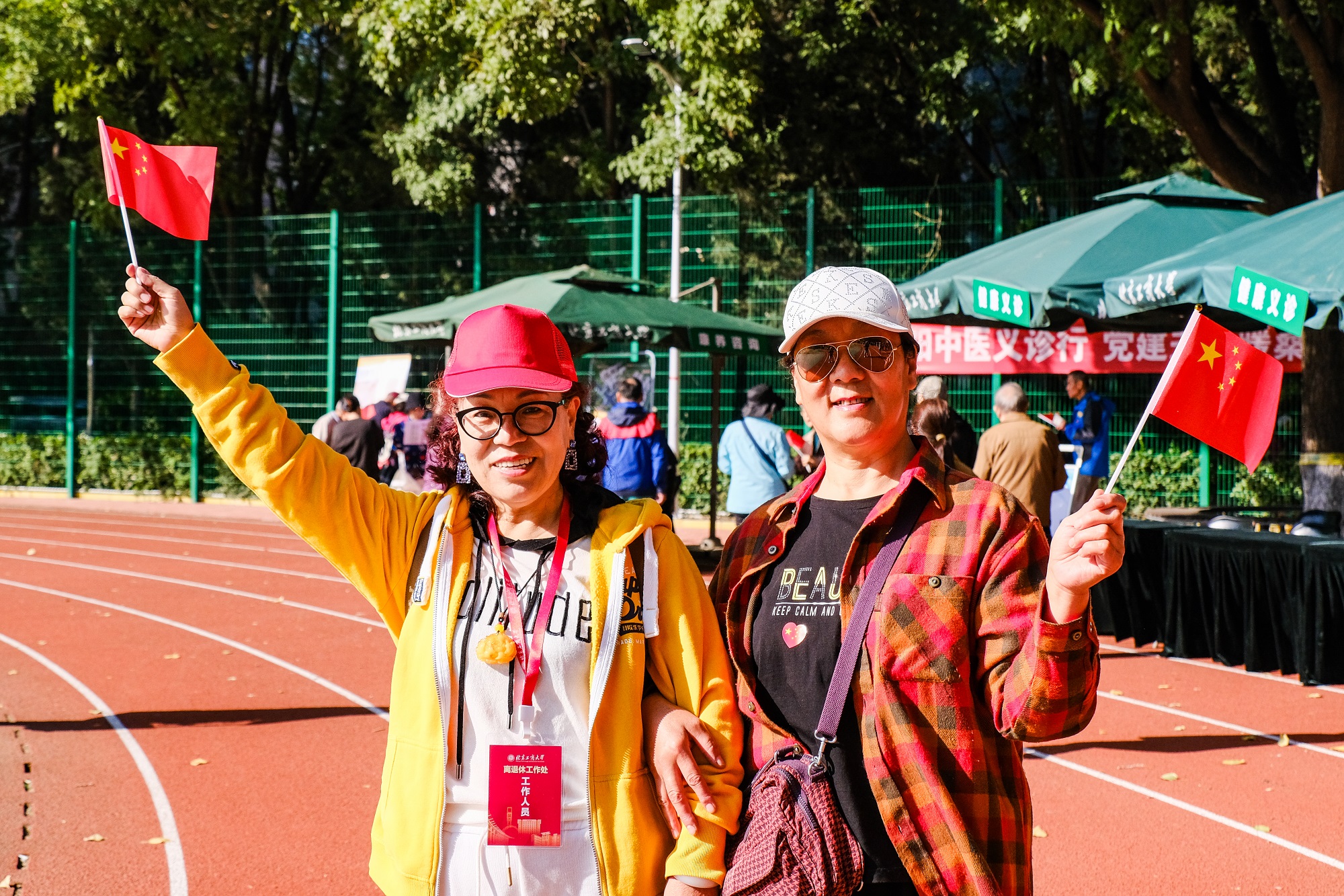 10月11日重阳节,学校离退休工作处举办的“欢度重阳节.情暖夕阳红”离退休教职工健步游艺活动在阜成路东区运动场火热开展。通过健步游艺、健康义诊、康养咨询、安全宣传等系列活动,庆祝新中国成立75周年,弘扬中华民族尊老爱老的传统美德和爱国情怀,丰富老同志的精神文化生活,同时倡导健康生活方式,增强身体素质和安全意识。
