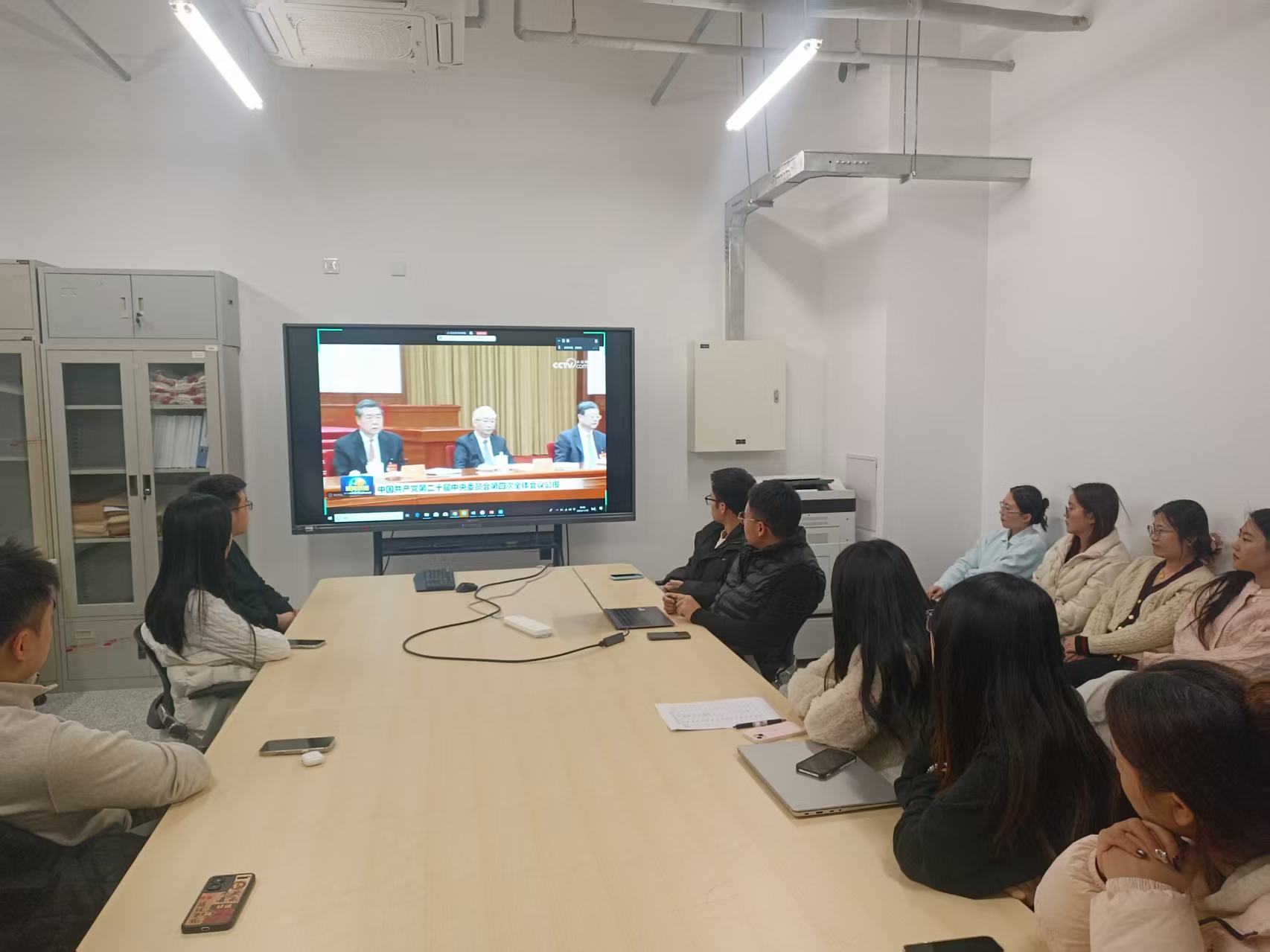 商学院聚焦“构建高水平社会主义市场经济体制”等与商科紧密相关的内容,在硕博党员中开展深度自学,并围绕“全会精神指引商科发展与创新”主线设置议题进行专题研讨。