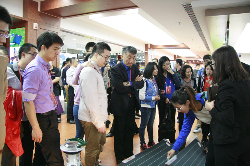 同学们在汉能集团高级战略总监王会东、管理人员朱彬、高倩的带领下参观了汉能集团的展厅,了解了汉能集团的发展历程、薄膜太阳能技术发展和汉能移动能源战略等情况,参观了各种移动能源产品、汉能太阳能全动力汽车等,并详细询问不同产品的性能、价格以及企业管理、企业文化等问题。