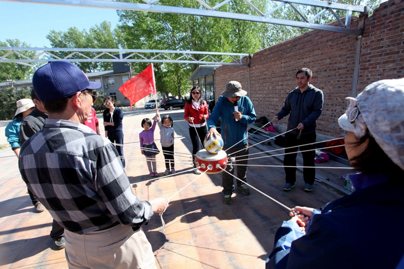 在植树现场,老师们在基地工作人员的指导下,挥锹培土,栽下新苗,共同为营造首都的蓝天贡献自己的力量。活动结束时,大家共植下柏树50余棵。随后教师们以小组为单位开展素质拓展,在分组后分别确定了队名、队旗、队标、队歌,开展迎风招展、巧解套绳、众志成城、团队破冰等素质拓展游戏。在丰富的拓展活动中,青年教师配合默契、凝聚合力,通过有效沟通和团队协作成功完成各项任务,大家感受到了团队的力量,体会到团结协作的意义。