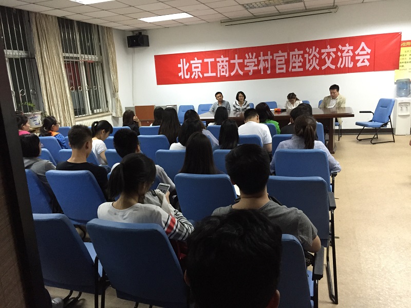 在房山区政府CSD管委会担任村官的校友马卓妮和在延庆县大庄科乡人民政府担任村官的校友张欢介绍了自己在村官报名、笔试、面试过程中遇到的问题,鼓励同学们踊跃报名村官。他们还介绍了目前的工作和生活情况,分享了担任村官的收获。他们认为,作为村官要积极主动完成各项工作任务,通过工作得到锻炼不断成长。