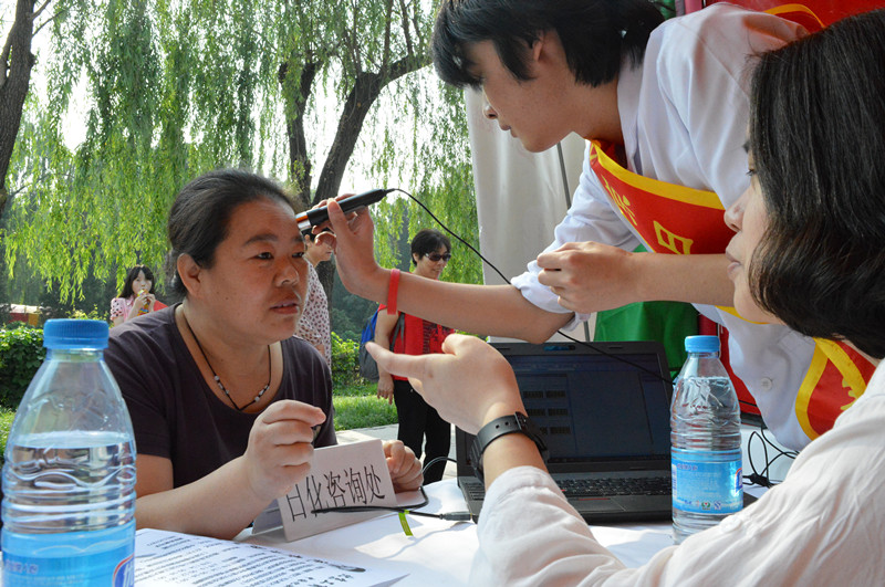5月21、22日,支部党员随同色情片日化协会一行,参加了2016年海淀科技周主场活动暨颐和园科普游园会。活动过程中主要为颐和园的游客进行了防晒祛斑咨询、皮肤护理咨询和专业的皮肤测试。一些游客亲身体验现场皮肤测试,了解了自身皮肤的光泽度、色度、油性、弹性等,学生党员耐心专业的解答和精准的仪器操作赢得了游客们的一致赞扬。整个活动中学生党员能够学以致用,既增强了专业实践能力,也提升了专业认同感,更发挥了学生党员应用的先锋模范作用。