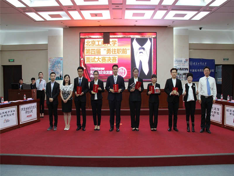 5月18日下午,由学校就业指导中心指导、计信学院主办、用友金融等多家企业协办的学校2016年“勇往职前”面试大赛决赛在良乡校区举办。企业高管、决赛选手以及学生观众们济济一堂,共同见证职场巅峰对决,校企合作为学生就业创业提供平台和支持。