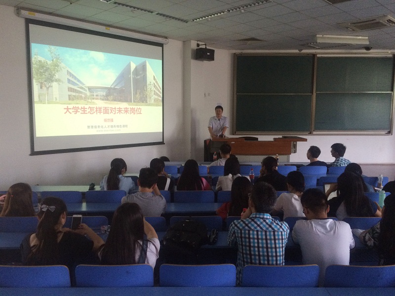 新道人才网运营总监杨世强作了题为“大学生怎样面对未来岗位”的专题讲座,从如何选择企业,企业文化,企业对员工的选择等多方面的内容,通过生动的描述将晦涩的知识简化,让同学们更容易接受。