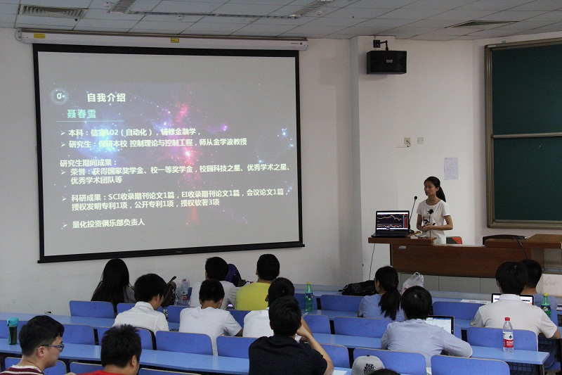 量化投资精英刘小川做了题为“寻找量化投资策略的一种方法论”开篇讲座,以幽默风趣的语言为同学们介绍了丰富实践经验,开拓了学生视野。
