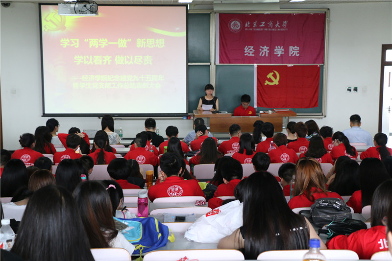 6月22日,经济学院举办了学习“两学一做”新思想,学以看齐做以尽责——纪念建党九十五周年暨2015-2016年度学生党支部工作总结表彰大会。学院党委副书记杜亚辉、各年级辅导员以及经济学院全体学生党员300余人参加了大会,会议由院团委书记单紫薇主持。