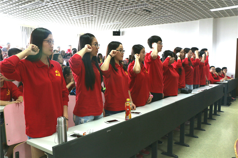 会上,学生党员们观看了电影《建党伟业》的精彩片段,重温了中国共产党建党那段峥嵘岁月,感受革命先辈崇高的信仰,以及他们对共产主义事业崇高的信仰和不懈的追求。在学生党支部书记的带领下,38名转正党员面对党旗,举起右拳庄严宣誓。