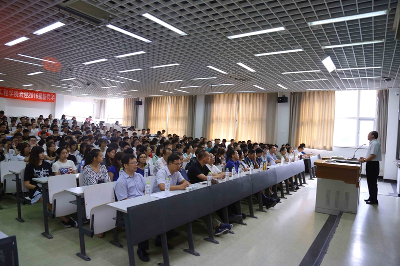 首先,黄志刚院长代表学院向2016级全体新生表示热烈的欢迎。随后黄院长介绍了学院的师资情况、学科建设、科研优势以及人才培养目标,并介绍了学院特色专业和近年来取得的主要成绩。他对新生提出三点要求:一是要坚定理想信念,他谈到,大学生要追求共产主义崇高理想,要积极向党组织靠拢。同时要了解国家的宗教政策,要知道校园里是不允许进行任何宗教活动的;二是要勤奋学习,希望同学们争做学习的先锋、学习的模范,专心致志搞好学习;三是要努力提高各方面综合素质和能力,他强调,大学生要不断学习和锻炼,持之以恒,注重合作,勇于开拓,不断提升自身的综合素质,将自身的成长与国家富强和民族复兴紧密联系在一起,争取成为优秀人才。