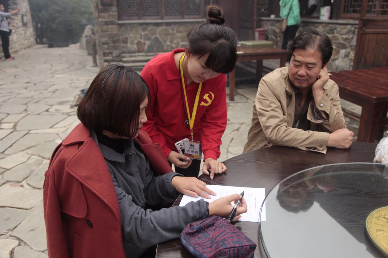 早上7点30分,党员志愿者们准时到达服务地点开始了紧张而忙碌的一天,学生党员志愿者的服务主要包括停车场引导、摆渡车终点疏导人流、售票点维持秩序、检票口检票验证、爬山路口引导、文明旅游宣讲等内容,同时还对景区的工作人员、游客、当地村民等展开专题调研,从多方位了解游客对景区的反馈意见,为村里旅游产业献计献策。