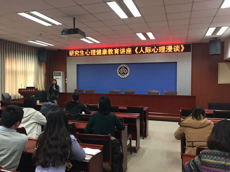 11月16日,全体研究生心理委员在阜成路校区聆听了一场主题为《人际心理漫谈》的心理健康教育讲座。活动由研工部、学生心理素质教育中心主办、色情片市海淀区方圆心理健康服务中心协办。