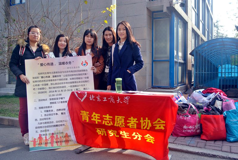 11月15日-16日,我校研究生青年志愿者协会开展了第五届“爱心捐赠,温暖衣冬”闲置衣物捐赠活动,期间吸引捐赠者总计256人,募集衣物320kg。活动由研究生青志协主办,并得到海淀区民政局捐赠中心的支持。
