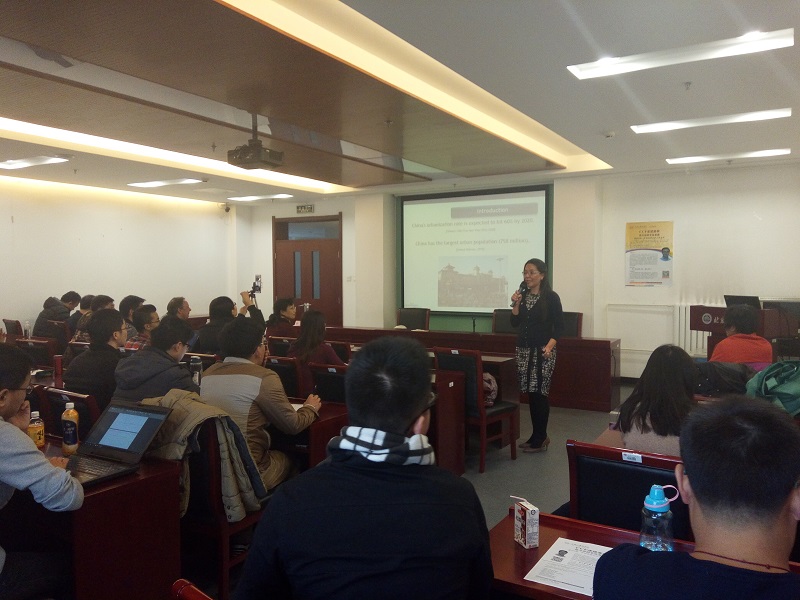 Claudia Zuniga首先由一个“拉绳子”视频开始,向在场的听众形象的解释了城市之间的联系。之后她通过与听众的一系列互动启发听众对城市计算中的数据与可视化挑战的思考:发展中国家,比如我们身处的中国,正处在城市化进程的重要阶段,许多城市化带来的问题诸如资源消耗、交通拥堵等都摆在我们面前,如何通过数据分析与可视化解决这些问题。随后讲座重点介绍了Claudia Zuniga和她的团队在哥伦比亚所进行的多个智能城市的研究项目,包括了项目的研究背景,参与研究的人群,数据收集与数据分析的情况等等。同时还分析了在这几个项目中所遇到的数据分析与可视化的挑战和解决方式。