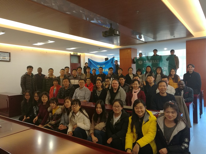 陈谊教授首先介绍了罗训、Luc Renambot和Claudia Zuniga三位专家的研究方向和学术成就,罗训教授介绍了CCF走进高校活动的意义和形式。